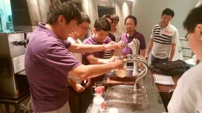 ビールの基礎知識《理論》と生ビールの注ぎ方《実技》を習得する、マジメな勉強会です。