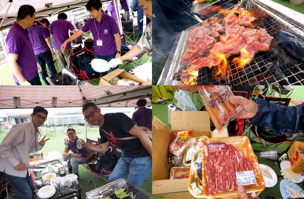 おやじの会OB会主催のバーベキュー大会です。 肉を焼く面々、肉を食べる面々 BBQの後は、ゲーセンで童心に帰り、ボウリング大会へ 最新施設の会場でボウリング世代が大暴れ! |