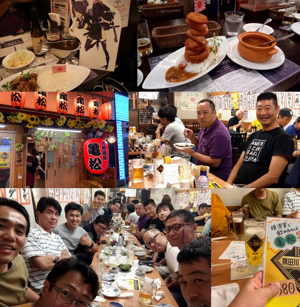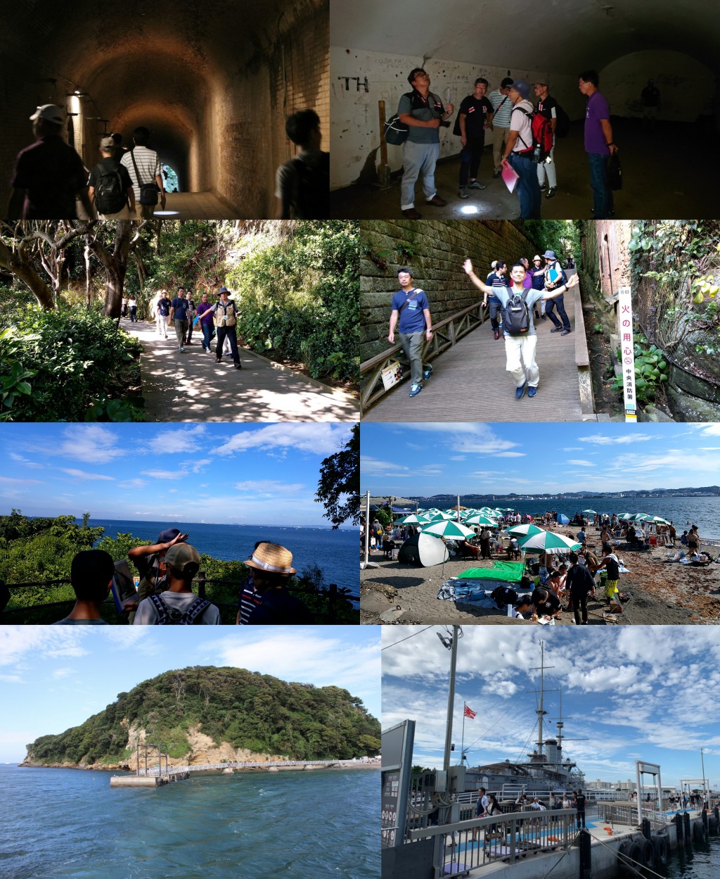 15名のおやじたちが横須賀軍港を堪能。4隻の潜水艦にはじまり、空母ロナルド・レーガン(なんと乗員6,000人!中にスタバや散髪屋などもあるようです)、イージス艦もたくさんいました。海の迎賓館と言われる「はしだて」も見えて、ラッキーな軍港巡りでした! 軍港巡りのあとはお楽しみランチタイム。よこすか満喫きっぷを使っているので、電車・バス乗り放題の上、ランチ(推定1,850円)もいただけました。 ルフィーと一緒に猿島へ。無人島と思いきやインスタ映えスポットなのかたくさんの人がいました。おやじたちはイギリス積み、フランス積みのレンガ造りの要塞をめぐりました。 ガイド付きで特別な場所も見学。バーベキュー場にあふれる人たちを横目におやじたちは校外学習に励みました。 猿島から戻ってきて、目の前に広がる海と空を眺めながらスパで汗を流しました(推定1,500円、よこすか満喫きっぷに含まれる) |