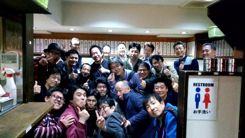 初回定例会を無事に終え、新加入の方を、現役会員、OB会員みんなで歓迎しました! 変顔なみなさん |